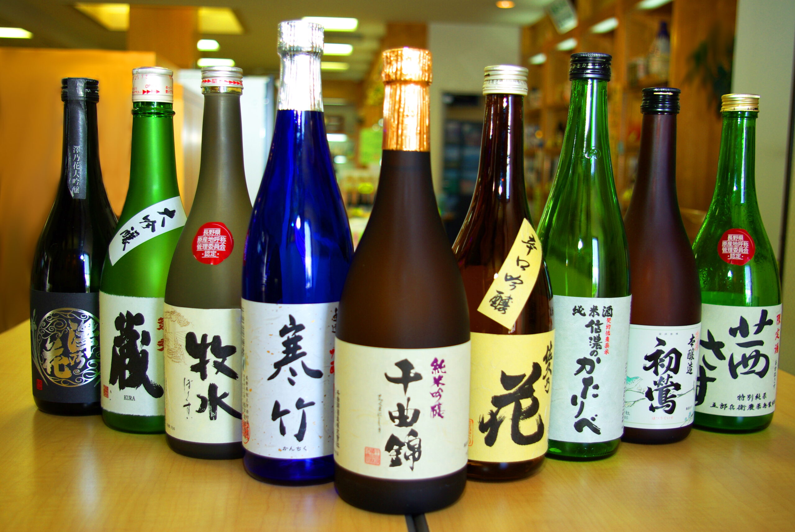 Une boutique spécialisée proposant de nombreux sakés produits à Saku.